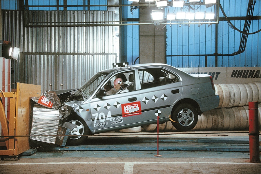 В России этим занимается только газета Авторевю. Наш первый краш-тест был проведен в 1996 году, а с 2001-го мы испытываем автомобили фронтальным ударом по методике европейской независимой ассоциации Euro NCAP — самой современной и позволяющей наиболее полно оценивать пассивную безопасность. К сожалению, нам не хватает финансов на то, чтобы по образу и подобию ассоциации Euro NCAP устраивать еще и боковой краш-тест, ведь мы за счет редакции покупаем испытуемые автомобили в торговой сети и платим за аренду дорогостоящего и сложного оборудования: разгонные катапульты и современные манекены Hybrid III с оборудованием для их калибровки в нашей стране имеются только на Дмитровском автополигоне под Москвой и на АвтоВАЗ